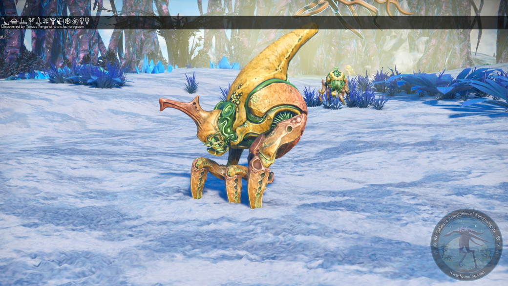 Found on planet New Kihillejo, where they wander the freezing fog and deep snowdrifts. They seem aware of the constant danger in which they live, always scanning the horizon for new threats. A gnawing hunger for sugar drives their every waking moment; their existance a constant hunt from sweet plant to the next.