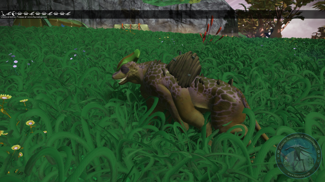 A wide-ranging creature, found in the grasslands of planet Phoenix Landing. Always on the move, these nomadic grazers search far and wide for the perfect grazing sites. Their blood is highly toxic to most predators, thanks to their oxide-rich diet.