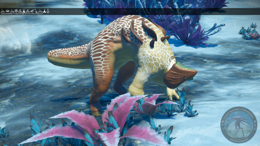 From the planet Edaeane XIV, where they fight for survival amidst permanent sub-zero temperatures. Collaborative herd animals, they work together to spot incoming predators, hundreds of eyes scanning the horizon in unison. They supplement their tuber-based diet with brightly-coloured flowers; the complex dye compounds providing a valuable micronutrient boost.