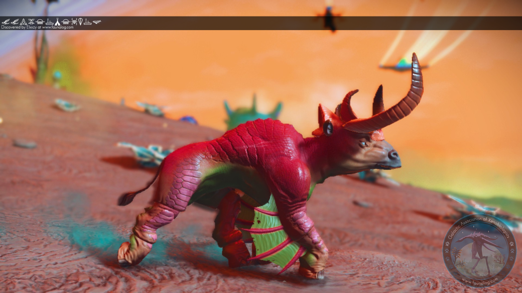 First recorded in the irradiated atmosphere of planet Tafally IV. Gentle creatures, though timid. They are reluctant to approach strangers, but display complex social behaviors within their herd. Gut analysis reveals their diet consists primarily of vast numbers of partially rotted nuts.